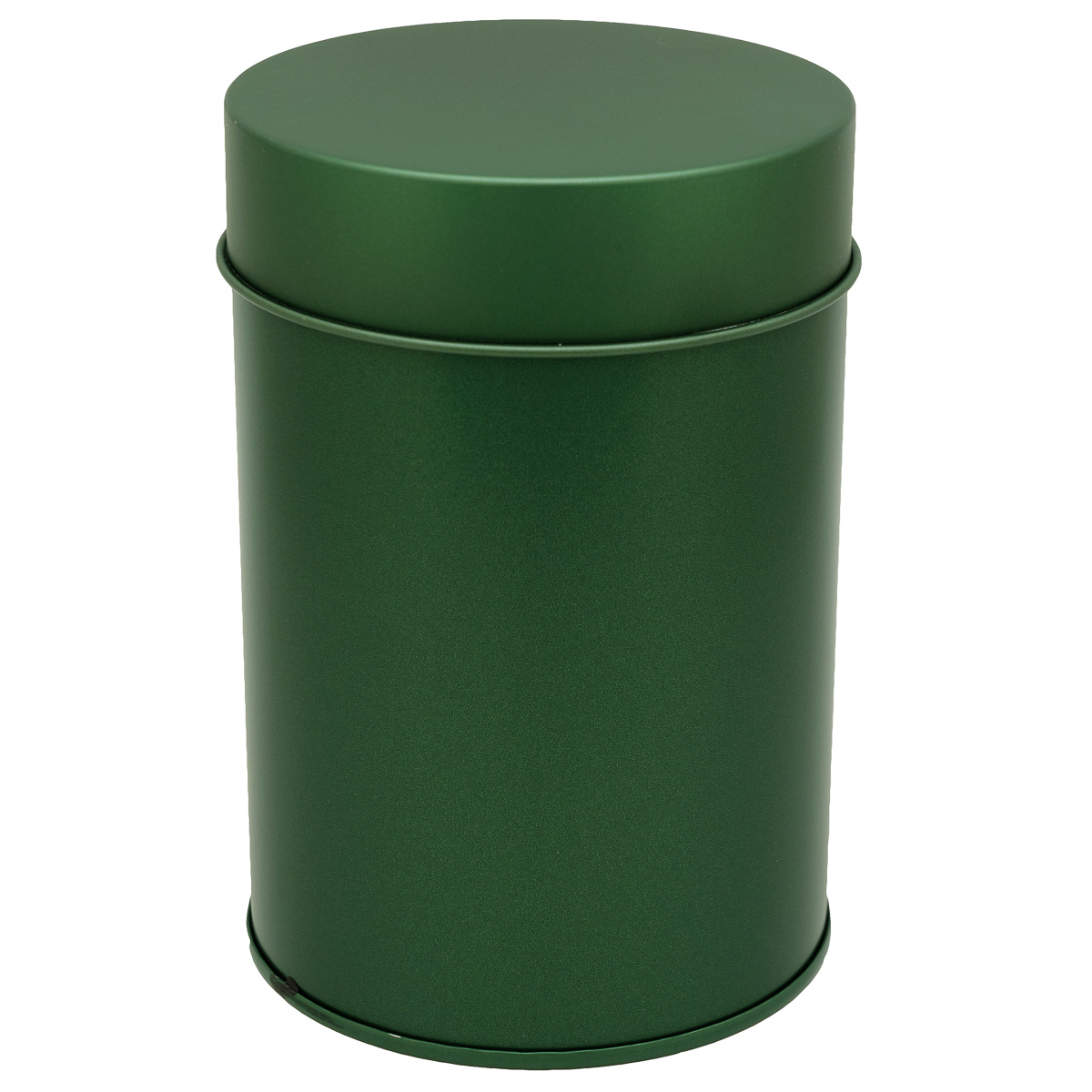 Plechová dóza na čaj s dvojitým víčkem pro lepší utěsnění.