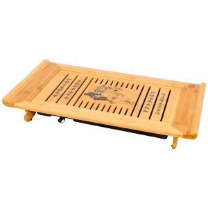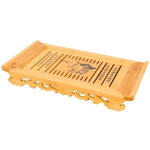 Jednoduché tmavé bambusové čajové moře s dekorem ptáčka. Mřížka uvnitř má na bocích nožičky a tak ji lze použít i mimo samotné moře.