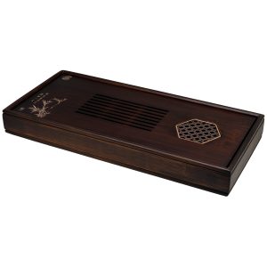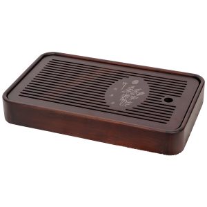 Moderní menší tmavé bambusové čajové moře se zakulacenými rohy. Tradiční dekor bambusu.