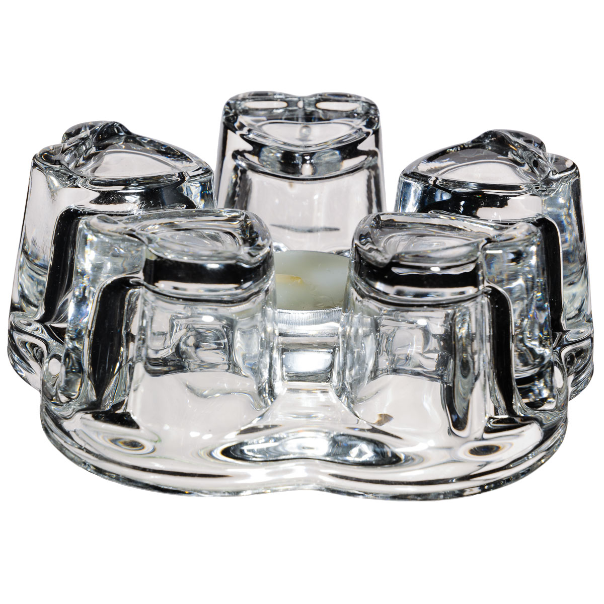 Celoskleněný ohříváček na čajové svíčky.