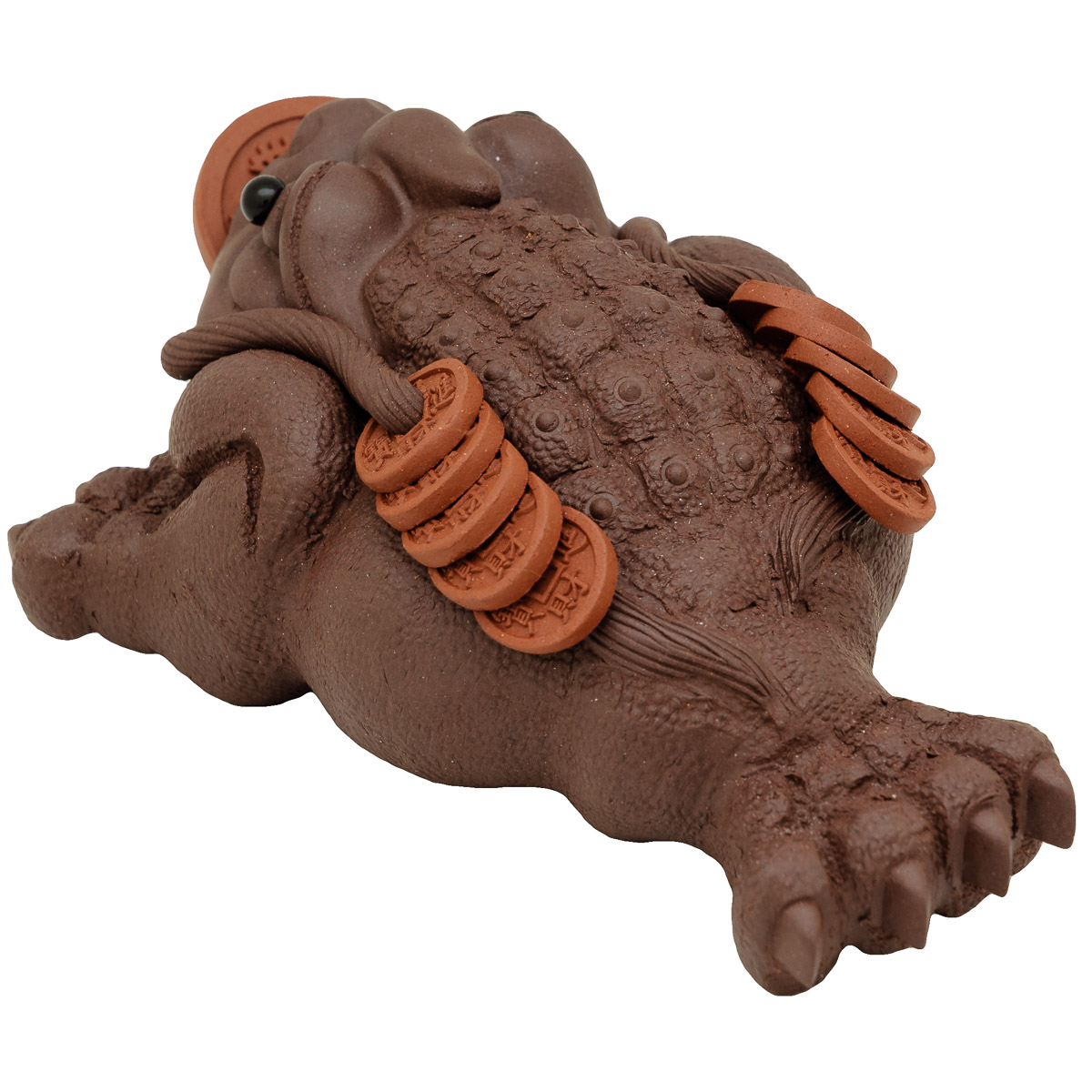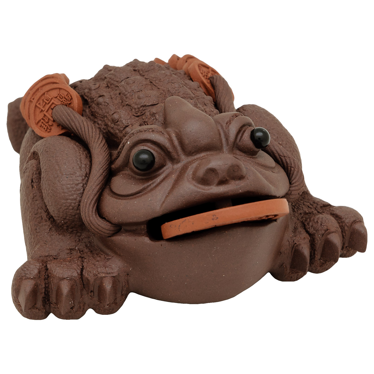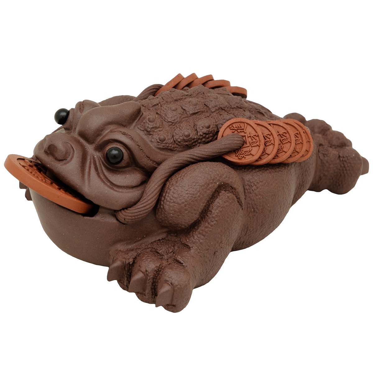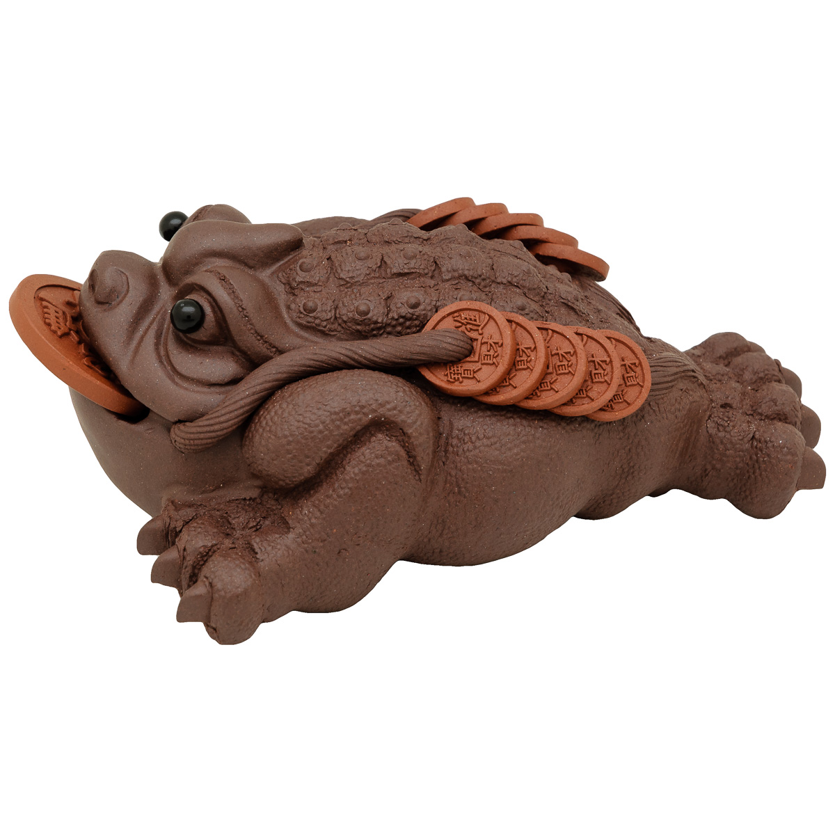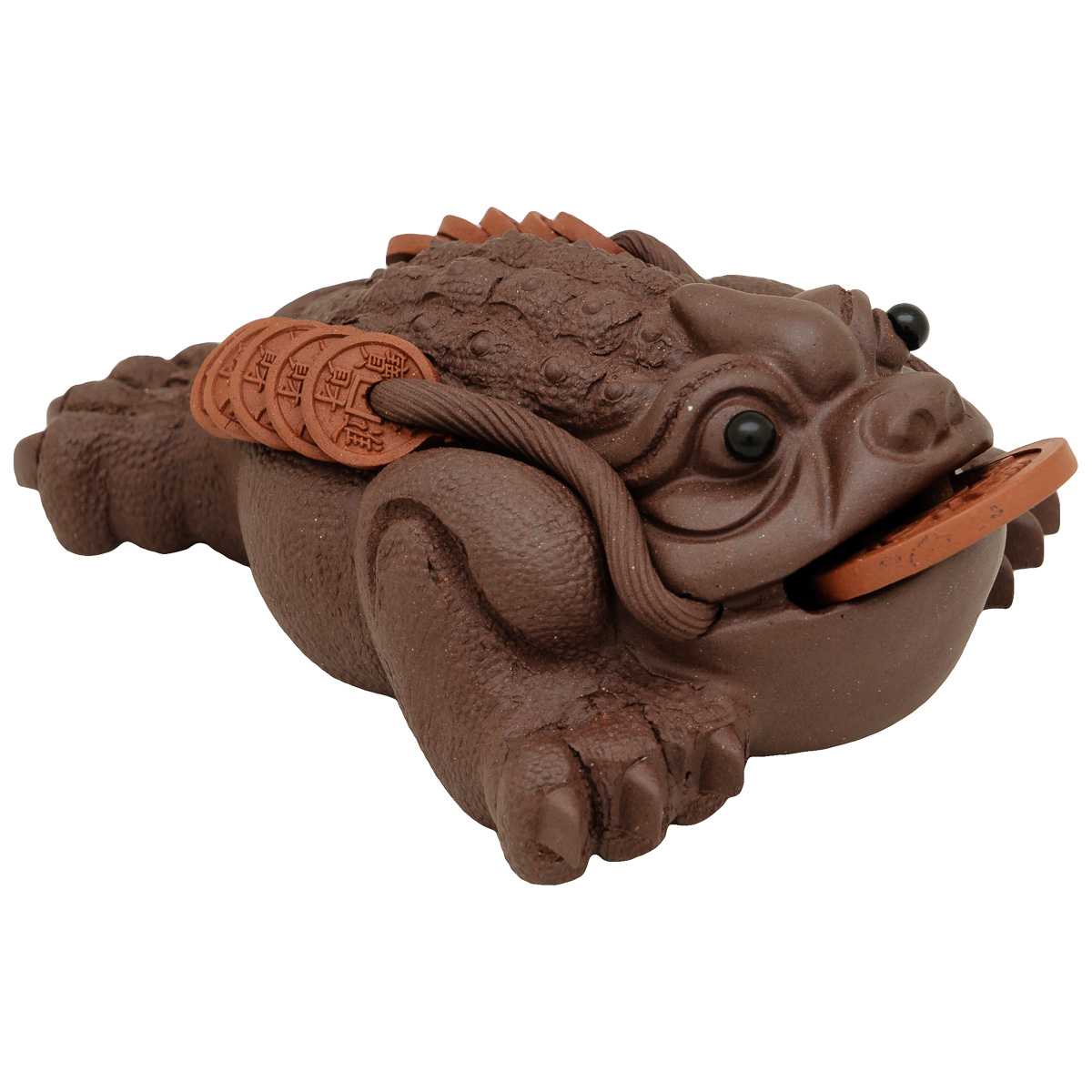 Třínohá žába je v Číně považována za tradiční symbol štěstí a přicházející hojnosti. V tlamičce drží minci a tím finanční hojnost stimuluje.