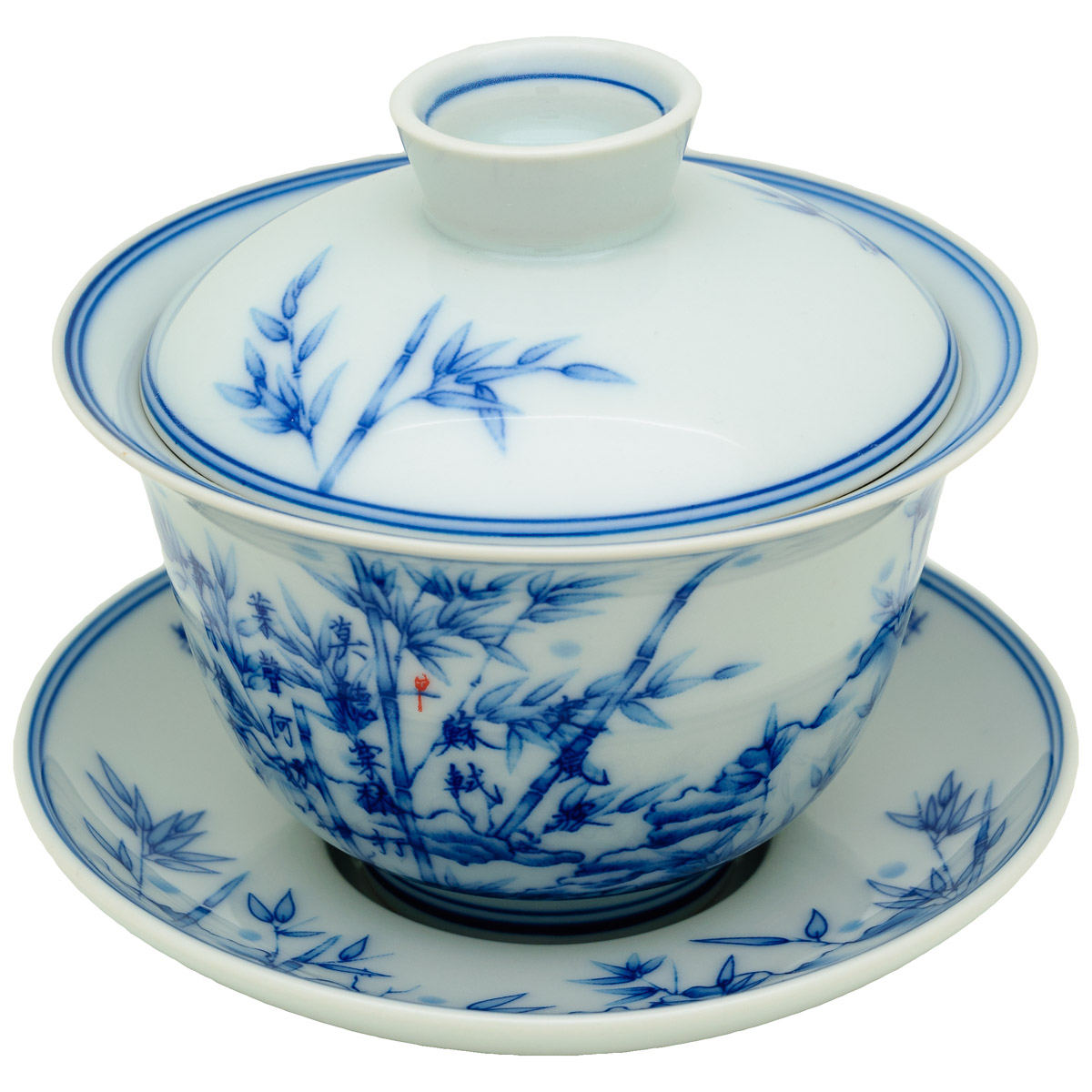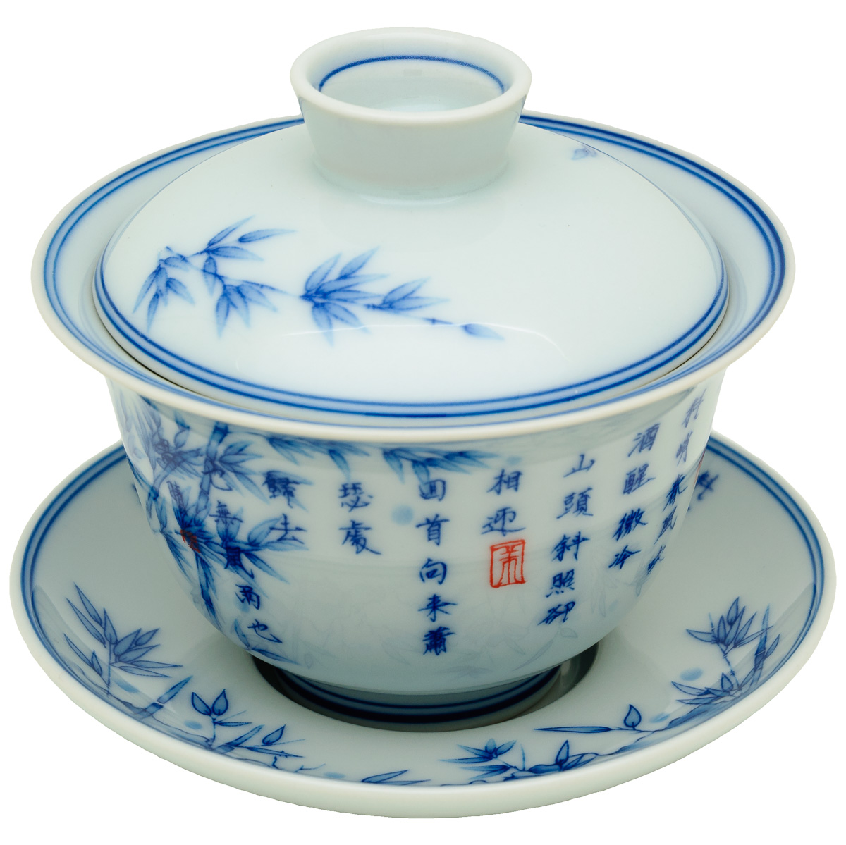 Klasický zhong s tradičním motivem s moderní inovací – víčko má na spodu výstupek, za který se dá zachytit za okraj zhongu.