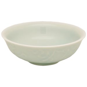 Světle modrozelená průsvitná miska s reliéfním dekorem draka. Historicky ji používaly pánové. Párová miska s fénixem.