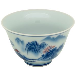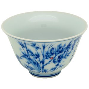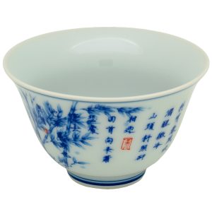 Nízký široký šálek z kvalitního porcelánu z Jing De Zhen. Tradiční glazura z nadrcených minerálů.